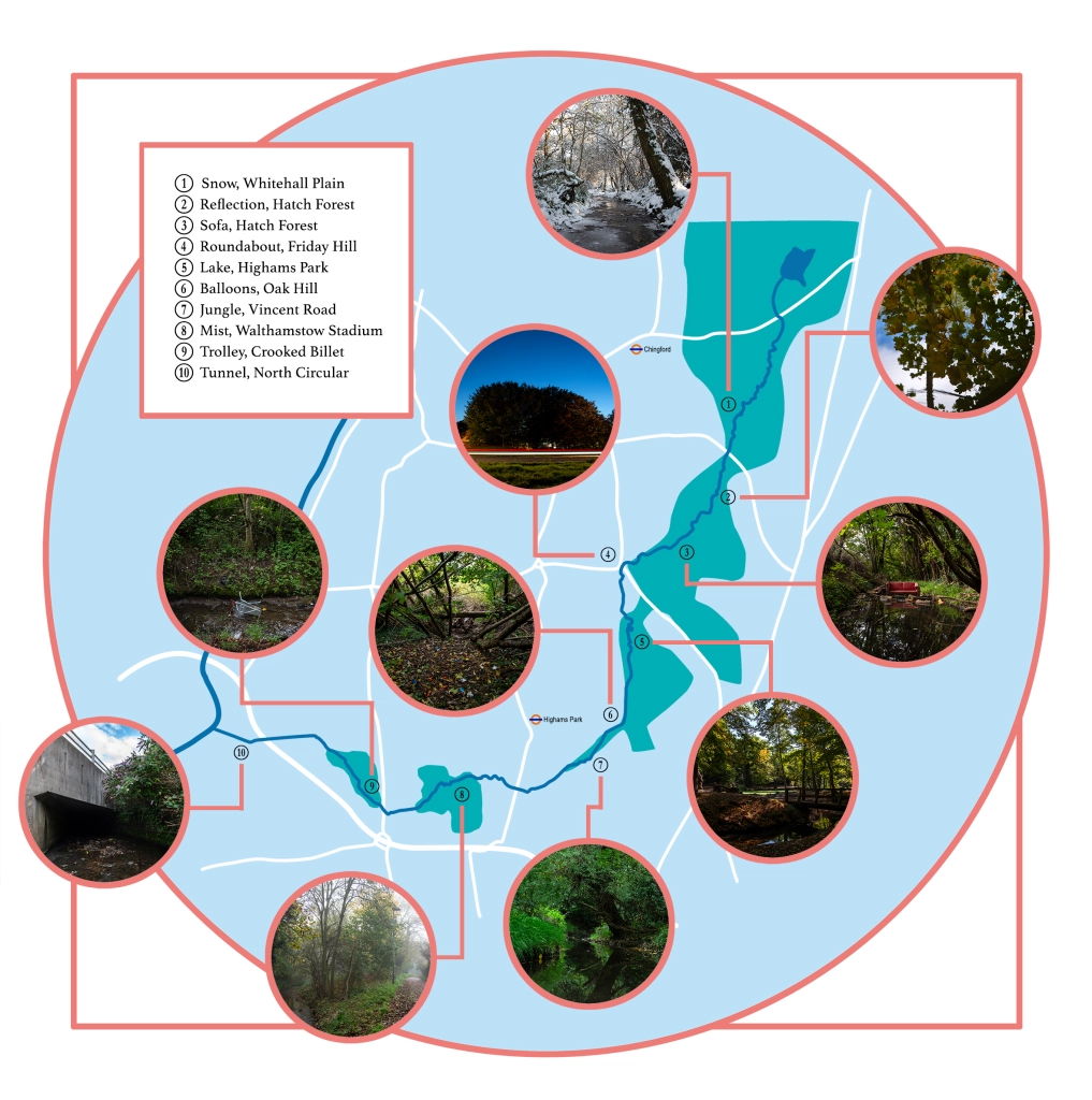 The Ching is a tributary of The River Lea in North East London. It flows from its source at Connaught Water, through parts of Epping Forest, past residential streets, playgrounds, the London Overground, supermarkets and finally under the North Circular before joining the Lea.