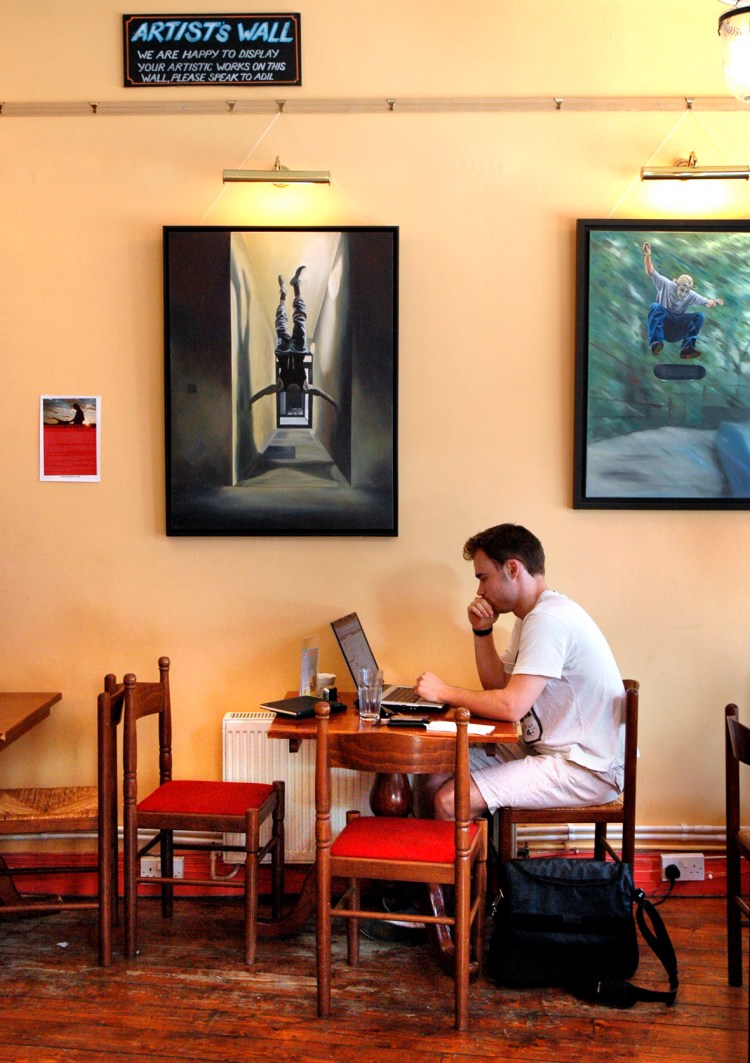 Terrific photos, as always. By any chane do you happen to know if the displayed art in the cafe is for sale? Thanks.