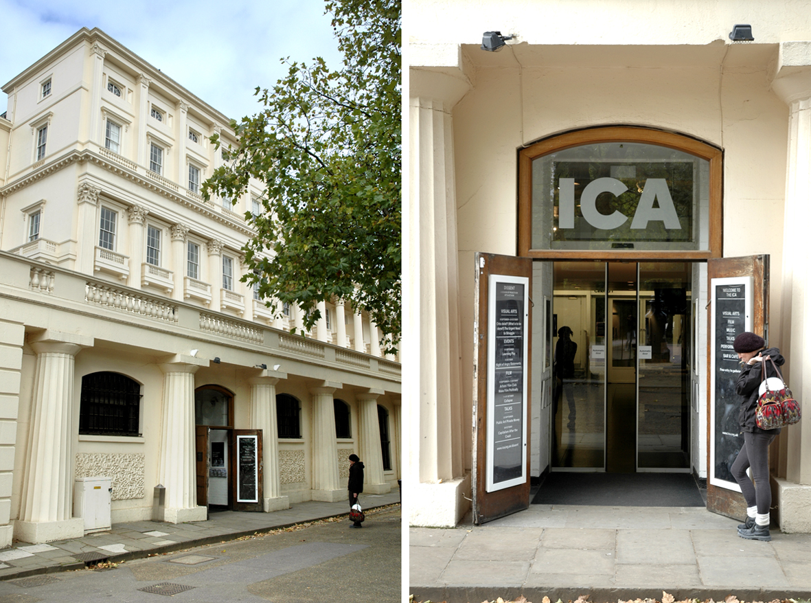 Institute of Contemporary Arts, The Mall, London. The ICA was founded by a group of radical artists in the 1940s and ‘exists to challenge the foundations of contemporary art’. It contains galleries, a theatre, two cinemas, a bookshop and a bar. It’s a lovely space, you should go.