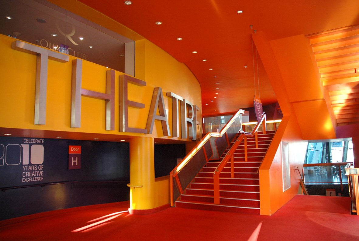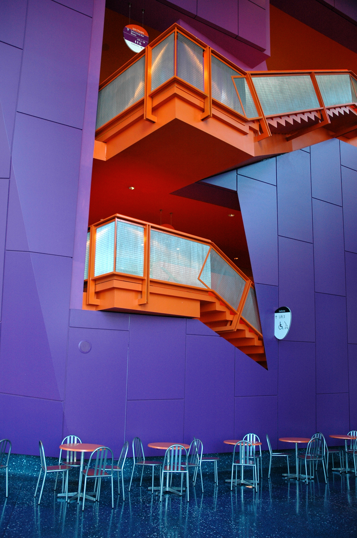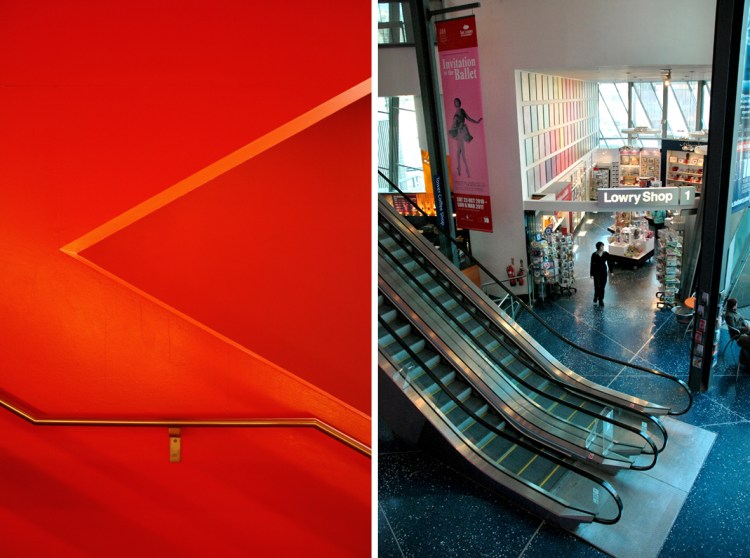 The Lowry, Manchester. Set in the regenerated Salford Quays, The Lowry complex consists of two theatres, studio and gallery spaces, a restaurant, and cafes & bars. It is named after the artist L. S. Lowry, known for his paintings of the industrial north of England and is home to the worlds largest collection of his work. Designed by architect Michael Wilford, the building is made up of geometrical shapes – a hexagon, circle, triangle and rectangle. The interior spaces are designed in layers like an onion and decorated with the bright colours that are typical of Wilford’s architecture. It’s a great space, well worth a visit.